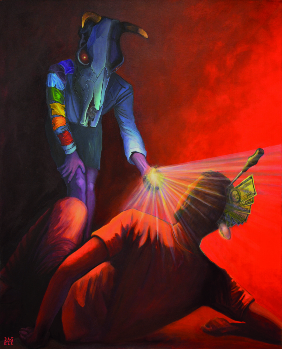 Prace przedstawione na wystawie pochodzą głównie z cyklu prac dyplomowych pt. „Mroczna rzeczywistość”, a także z obrazów wykonanych podczas studiów i tuż po ich zakończeniu.