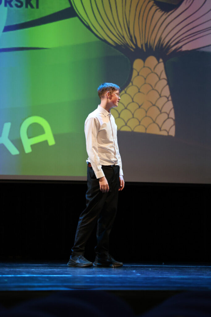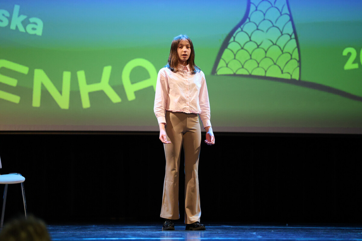 Natomiast w kategorii klas VII–VIII laureatką została Hanna Jędrzejewska z klasy 8A tej samej szkoły, która zaprezentowała interpretacje utworów „Nienawiść” Wisławy Szymborskiej oraz fragment „Małego Księcia” Antoine’a de Saint-Exupéry’ego.