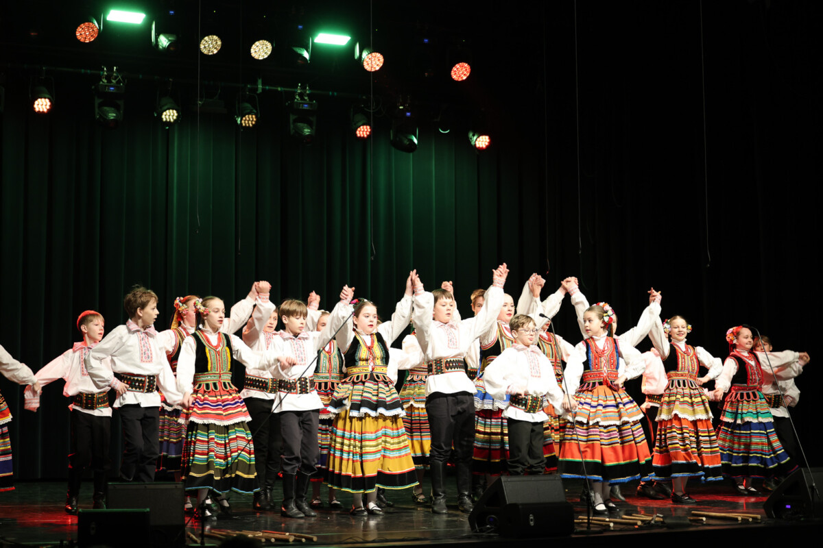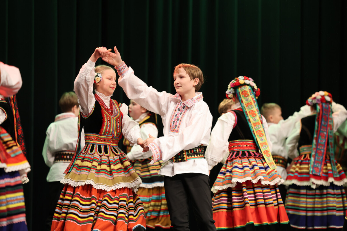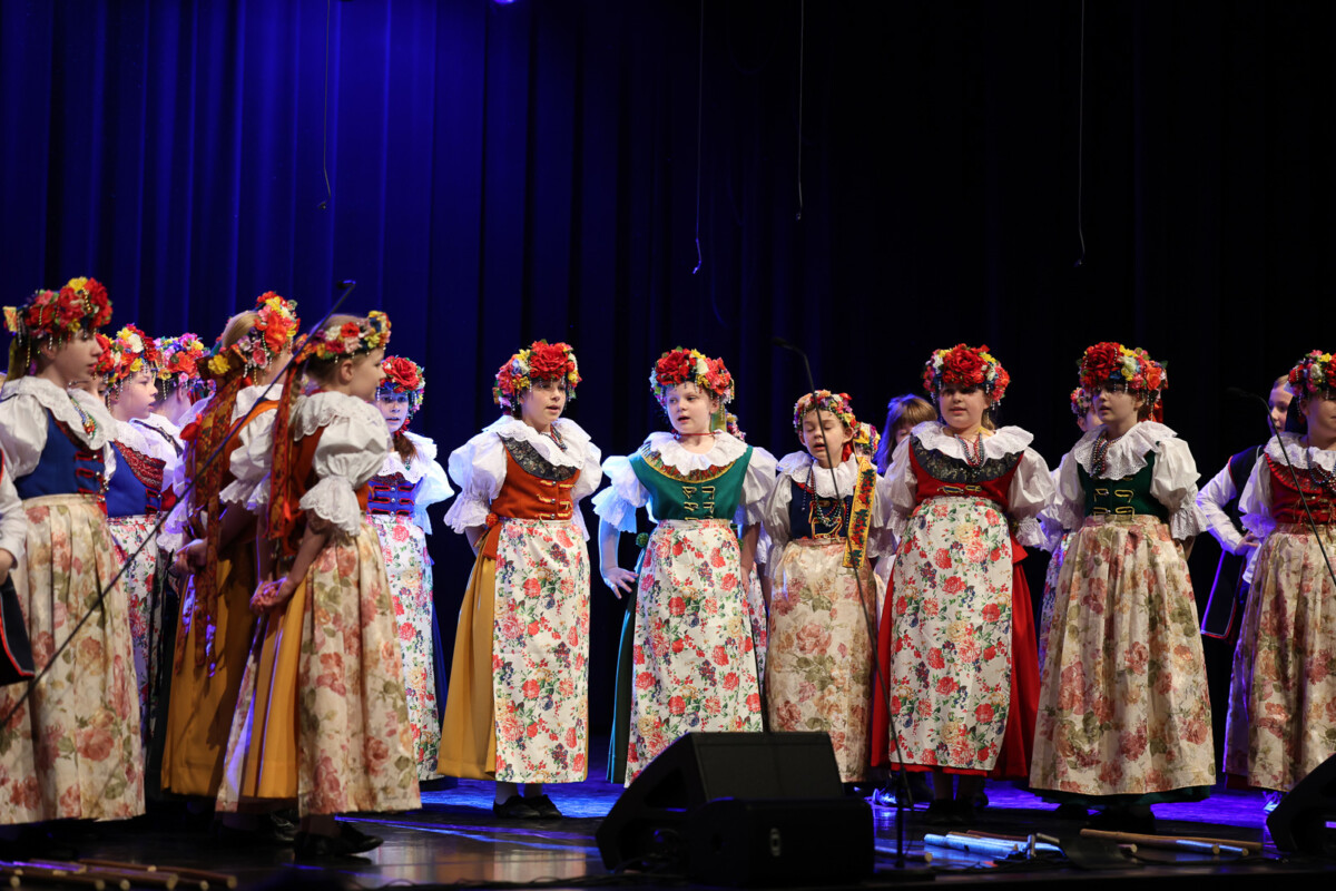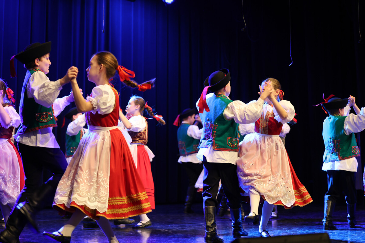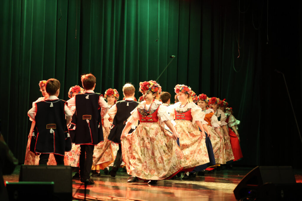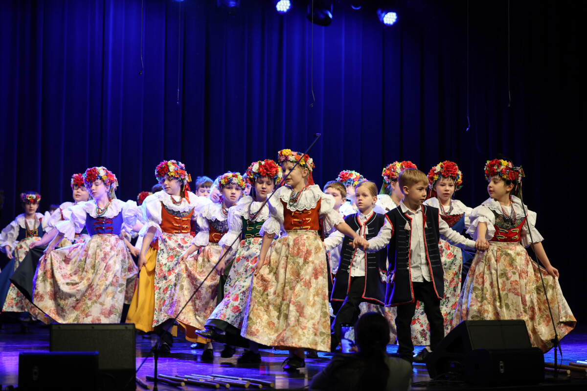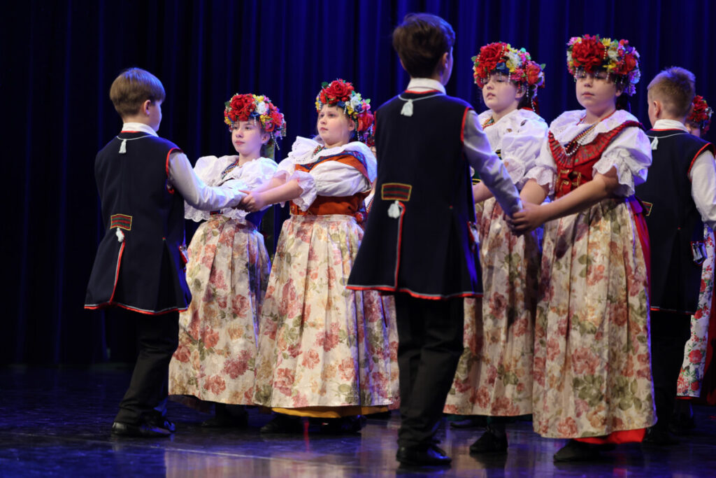 Na scenie zaprezentowały się dzieci i młodzież z Reprezentacyjnego Zespołu Pieśni i Tańca „Sokołowianie”. Młodzi artyści zabrali publiczność w barwną podróż po różnych regionach Polski, prezentując tradycyjne tańce i pieśni m.in. ze Śląska, Podlasia, Lubelszczyzny i Spisza. Występ zachwycał nie tylko dopracowaną choreografią, ale również autentycznymi, pięknymi strojami ludowymi, które podkreślały bogactwo polskiego folkloru.