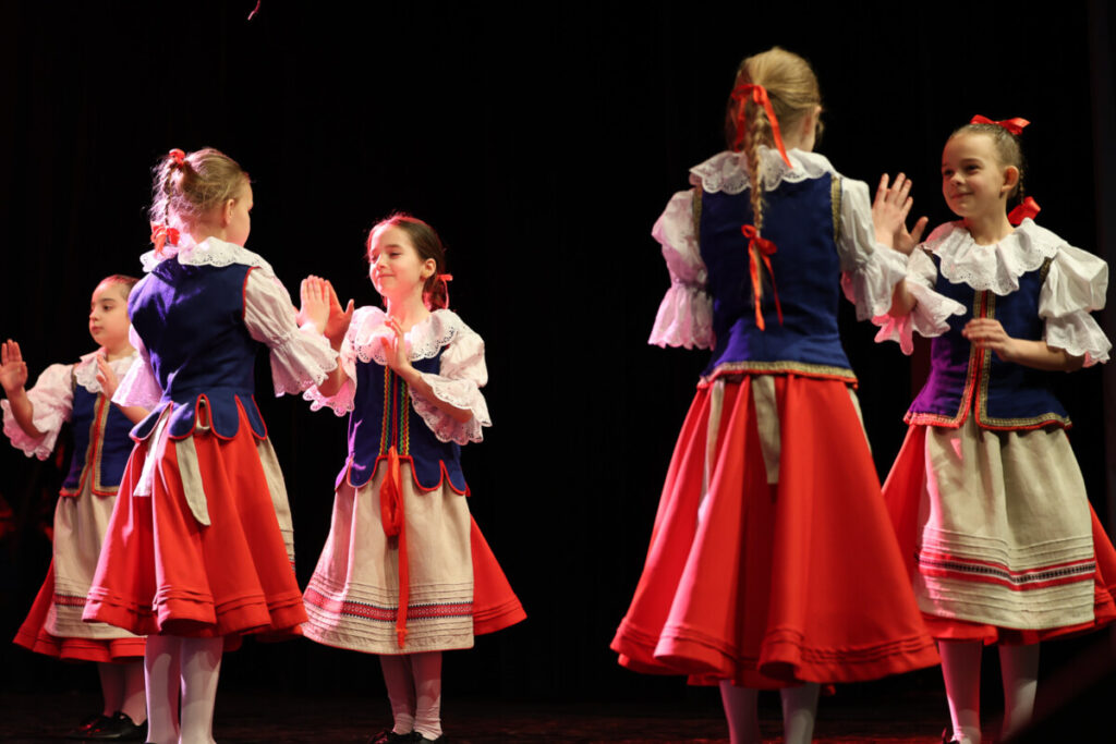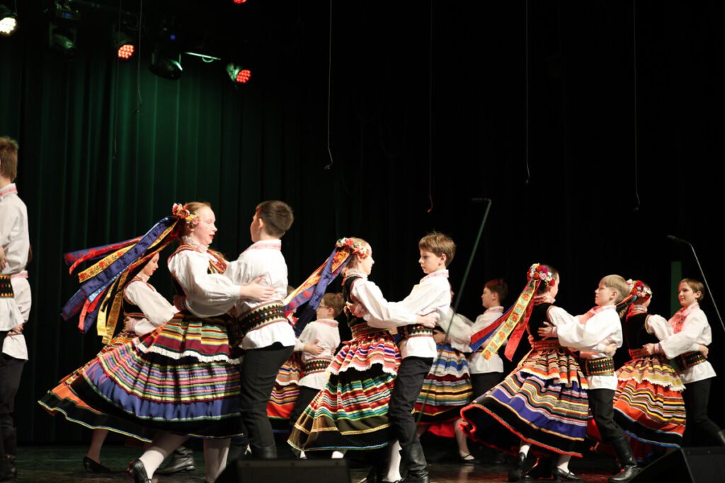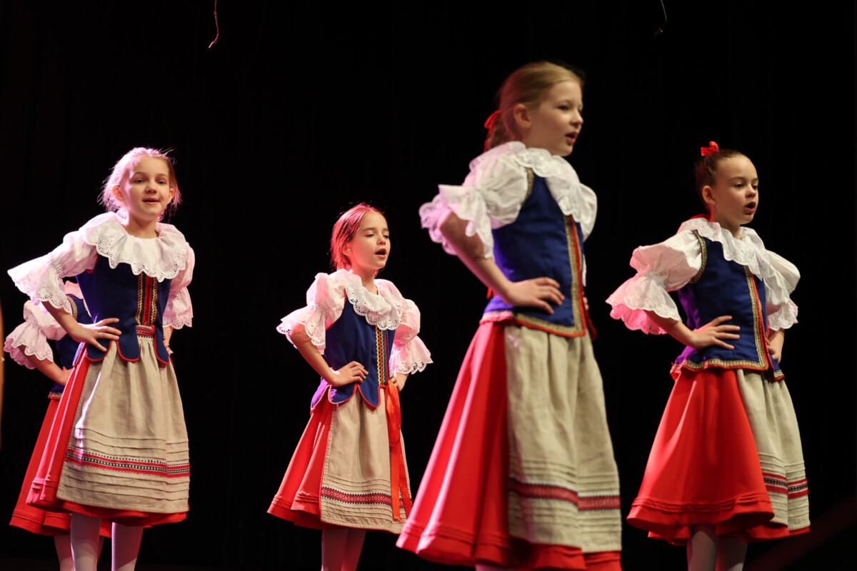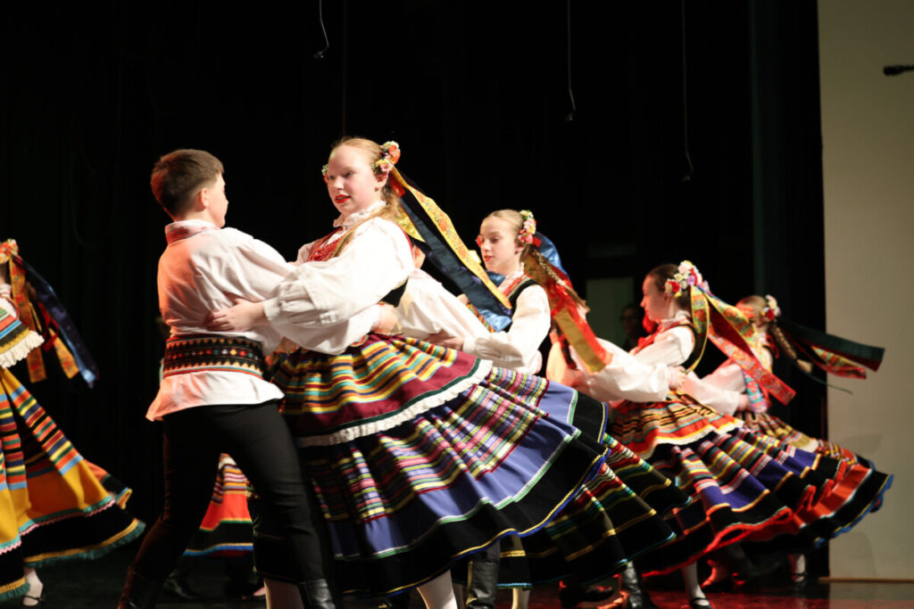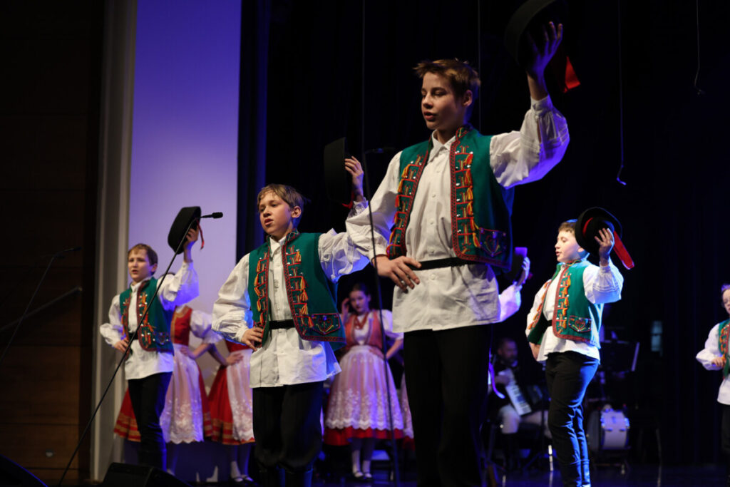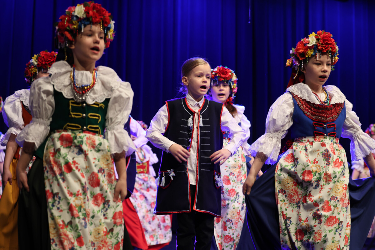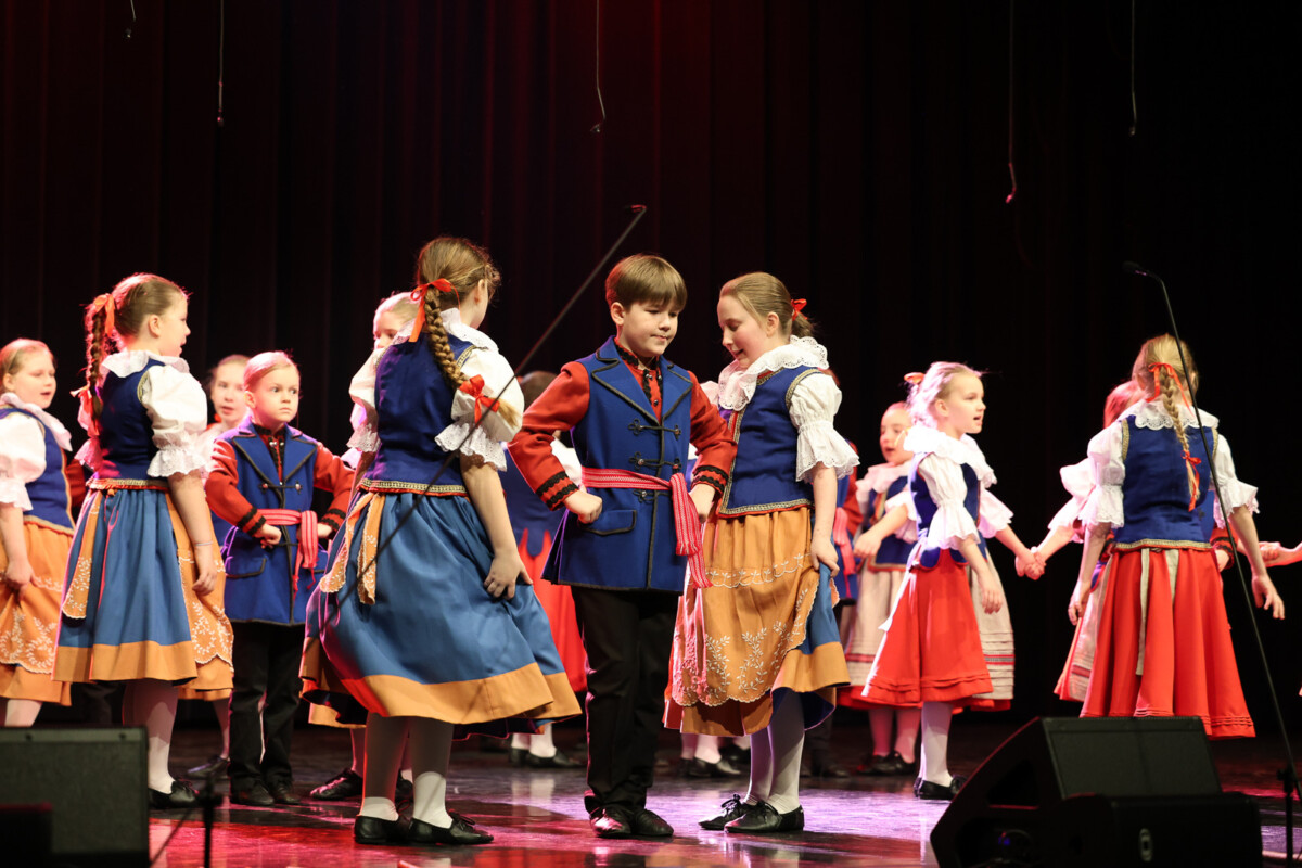 Na scenie zaprezentowały się dzieci i młodzież z Reprezentacyjnego Zespołu Pieśni i Tańca „Sokołowianie”. Młodzi artyści zabrali publiczność w barwną podróż po różnych regionach Polski, prezentując tradycyjne tańce i pieśni m.in. ze Śląska, Podlasia, Lubelszczyzny i Spisza. Występ zachwycał nie tylko dopracowaną choreografią, ale również autentycznymi, pięknymi strojami ludowymi, które podkreślały bogactwo polskiego folkloru.