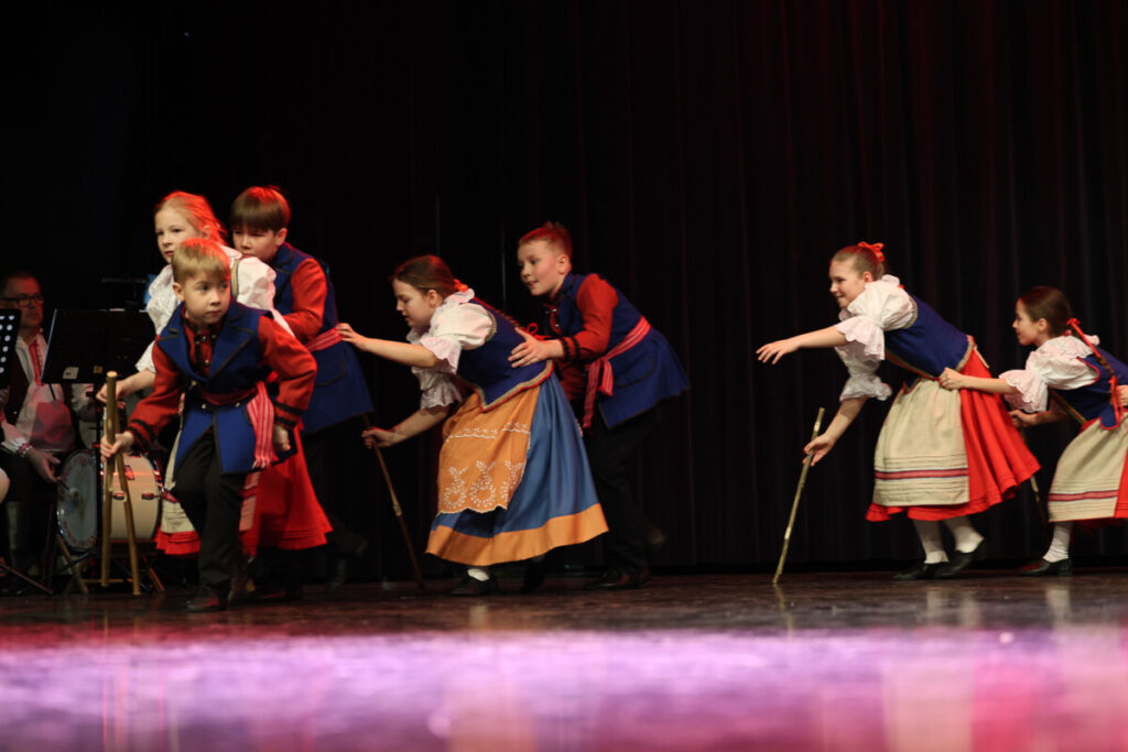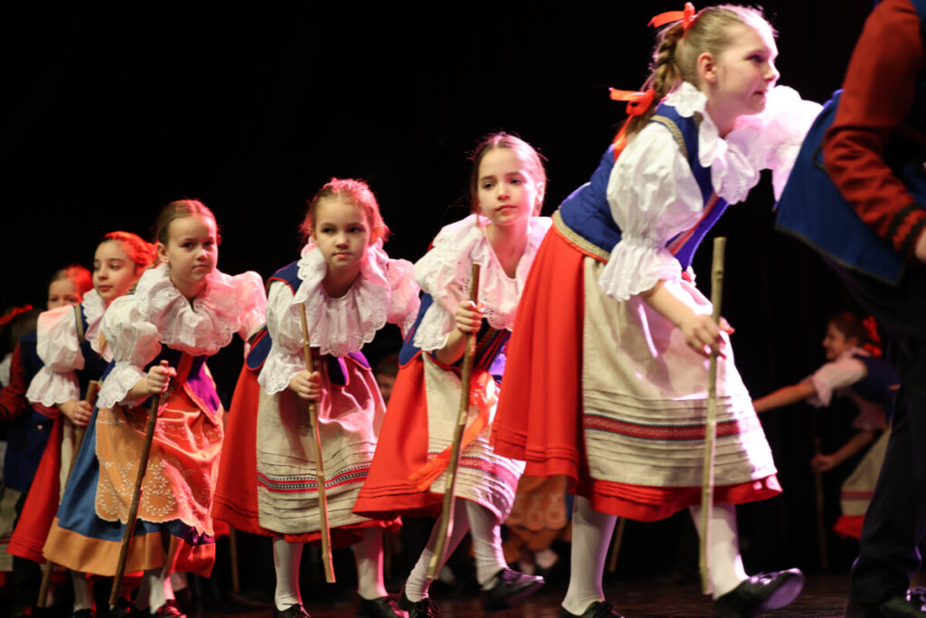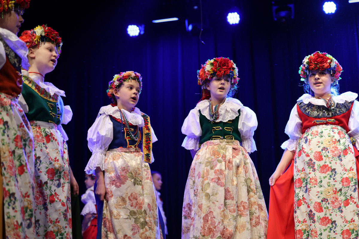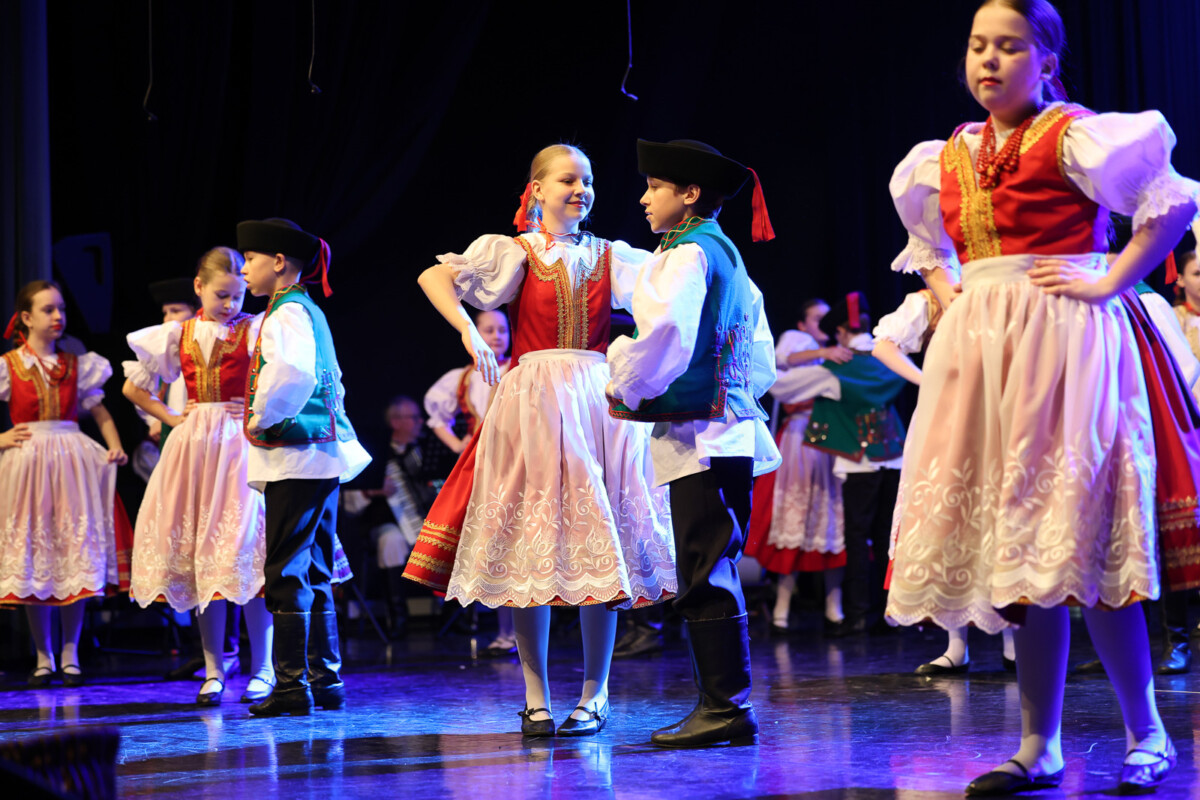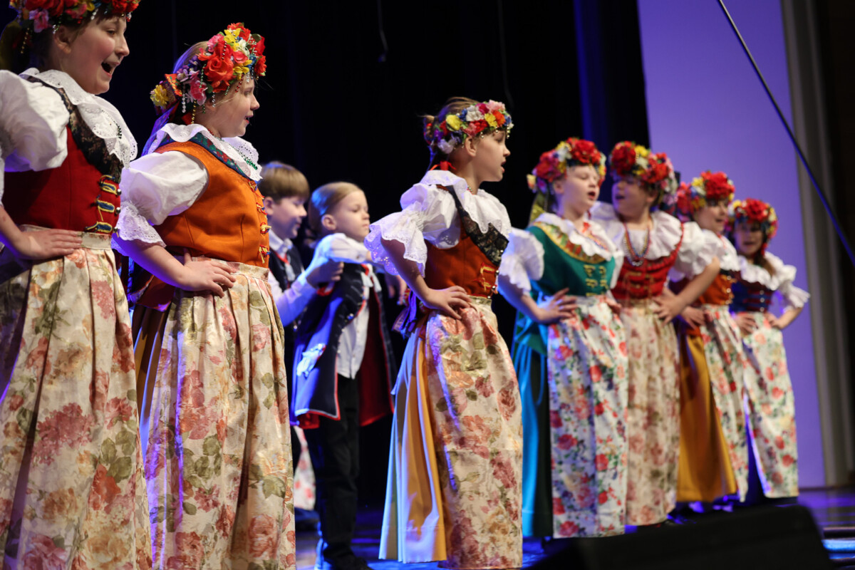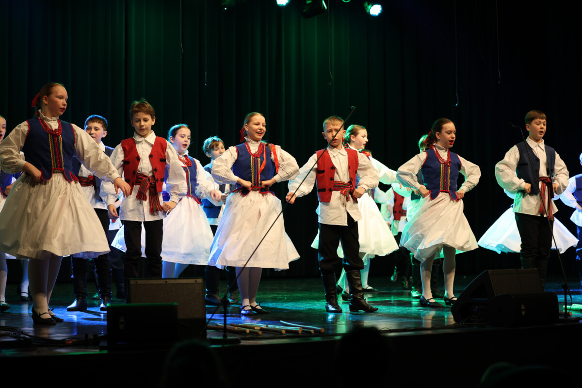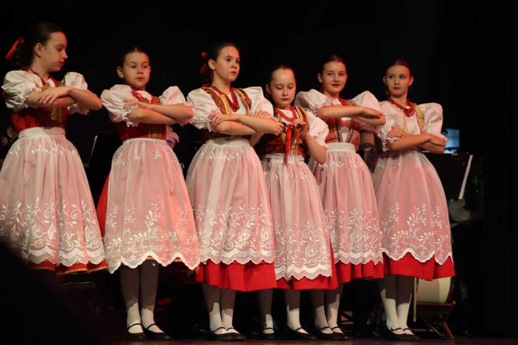 Na scenie zaprezentowały się dzieci i młodzież z Reprezentacyjnego Zespołu Pieśni i Tańca „Sokołowianie”. Młodzi artyści zabrali publiczność w barwną podróż po różnych regionach Polski, prezentując tradycyjne tańce i pieśni m.in. ze Śląska, Podlasia, Lubelszczyzny i Spisza. Występ zachwycał nie tylko dopracowaną choreografią, ale również autentycznymi, pięknymi strojami ludowymi, które podkreślały bogactwo polskiego folkloru.