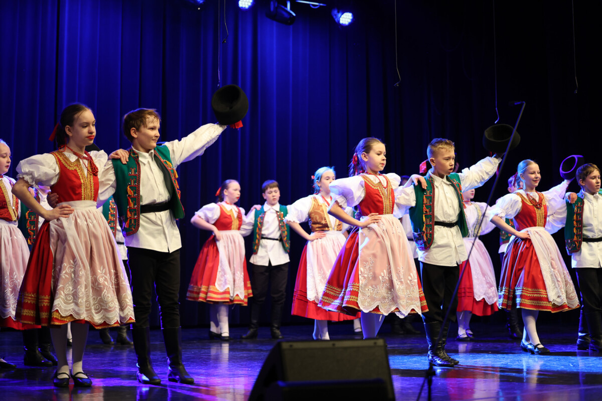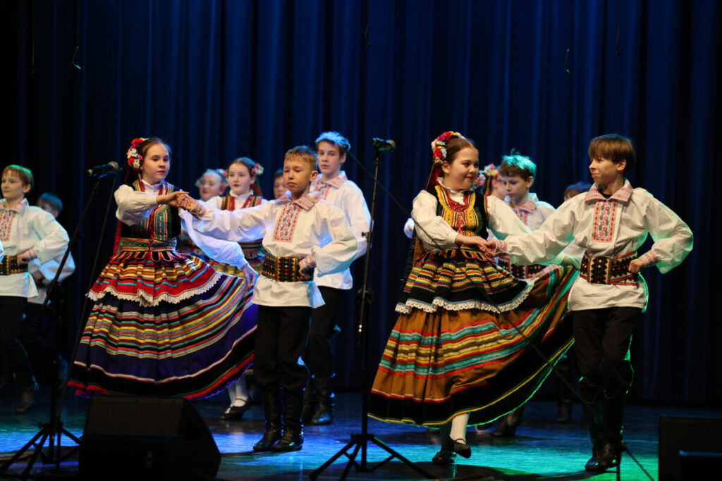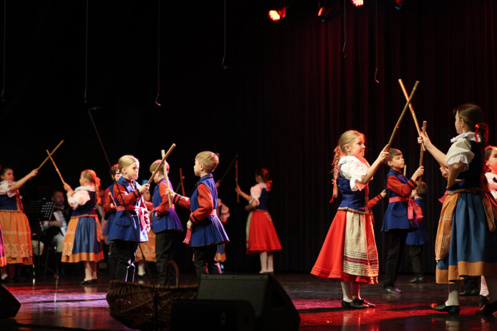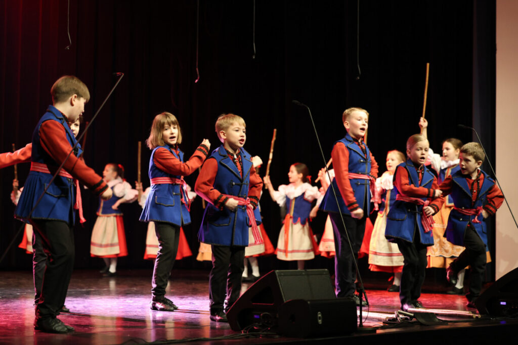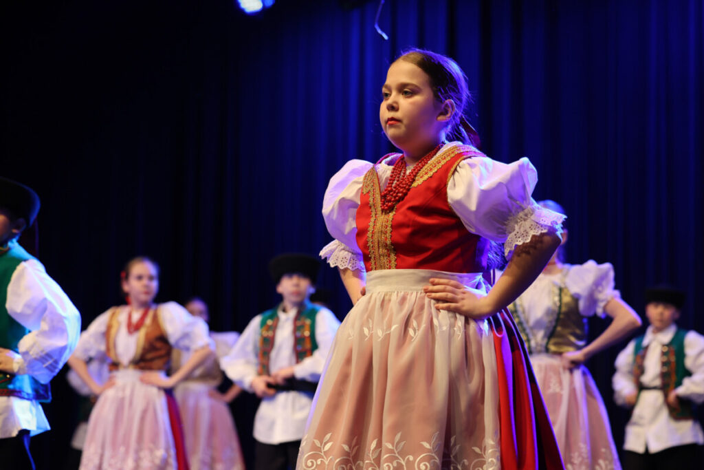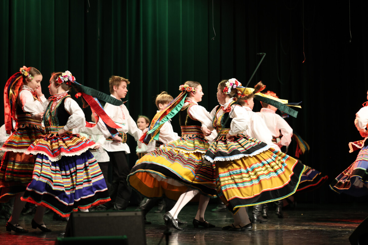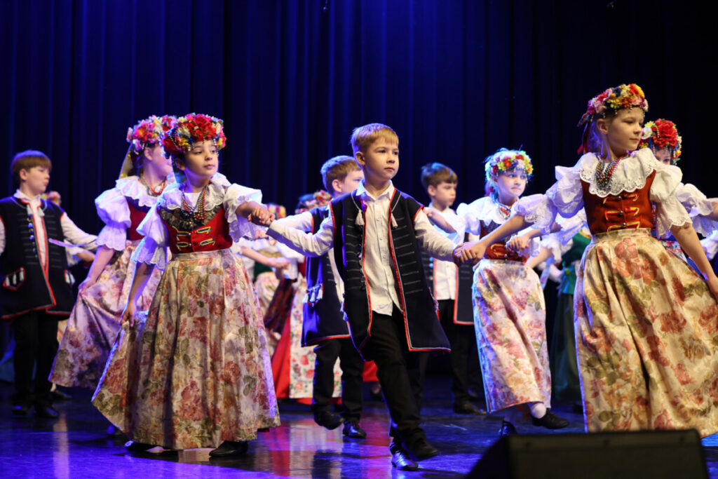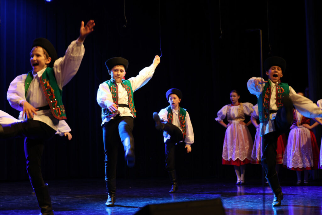 Na scenie zaprezentowały się dzieci i młodzież z Reprezentacyjnego Zespołu Pieśni i Tańca „Sokołowianie”. Młodzi artyści zabrali publiczność w barwną podróż po różnych regionach Polski, prezentując tradycyjne tańce i pieśni m.in. ze Śląska, Podlasia, Lubelszczyzny i Spisza. Występ zachwycał nie tylko dopracowaną choreografią, ale również autentycznymi, pięknymi strojami ludowymi, które podkreślały bogactwo polskiego folkloru.