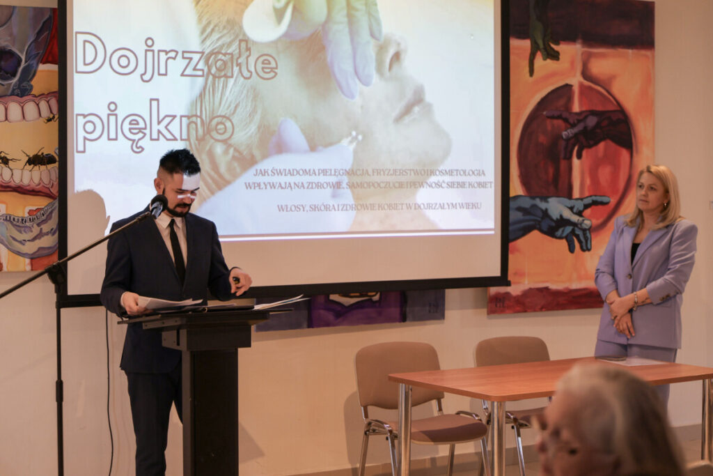 Wydarzenie zgromadziło Panie zainteresowane świadomą pielęgnacją oraz dbaniem o zdrowie i dobre samopoczucie w dojrzałym wieku. Podczas wykładu uczestniczki mogły dowiedzieć się, jak odpowiednia pielęgnacja skóry, właściwie dobrane zabiegi kosmetologiczne oraz profesjonalne fryzjerstwo wpływają na kondycję włosów, skóry, a także na pewność siebie i komfort codziennego życia.