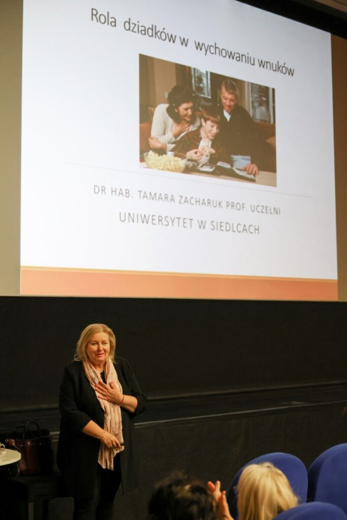 Spotkanie poprowadziła Tamara Zacharuk, była rektor Uniwersytet Przyrodniczo-Humanistyczny w Siedlcach, ceniona specjalistka w dziedzinie pedagogiki międzypokoleniowej i edukacji rodzinnej. Prelekcja oparta była zarówno na wiedzy naukowej, jak i praktycznych obserwacjach, co pozwoliło uczestnikom spojrzeć na rolę dziadków w wychowaniu dzieci z różnych perspektyw.