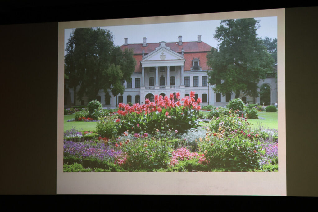 Podczas wykładu uczestnicy mieli okazję poznać historię rezydencji sięgającą XVIII wieku – od czasów, gdy należała do rodu Bielińskich, poprzez okres świetności jako siedziby Zamoyskich, aż po powojenne losy pałacu. Szczególną uwagę poświęcono przemianie obiektu w muzeum oraz zachowaniu jego autentycznego charakteru.