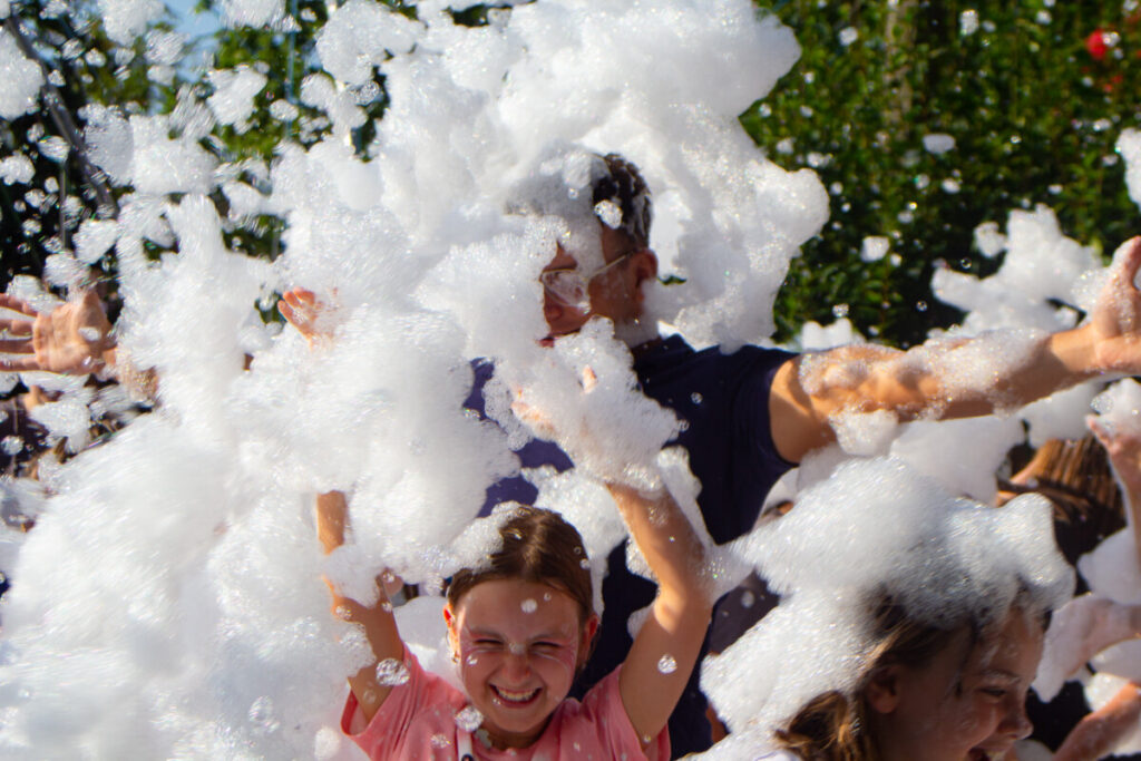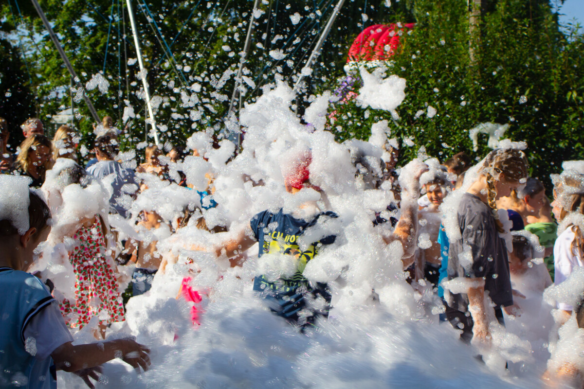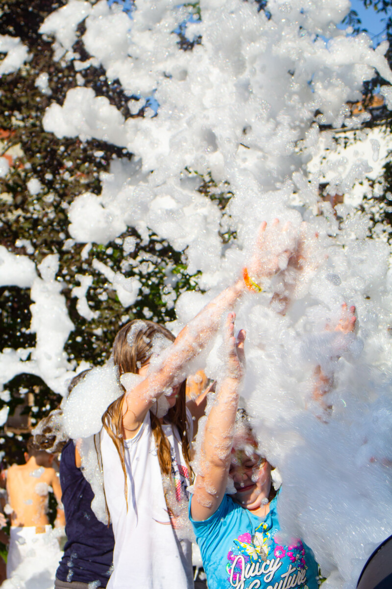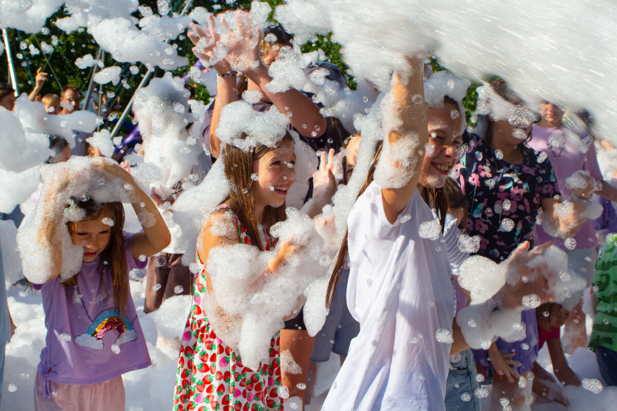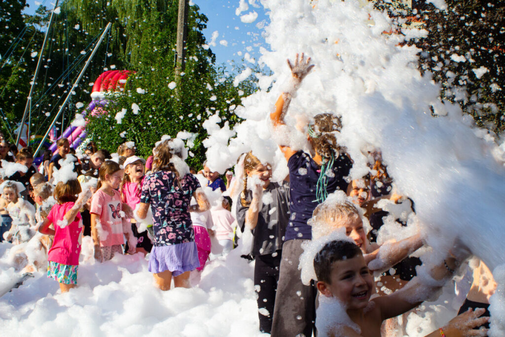 Ogromnym zainteresowaniem cieszyło się również malowanie buziek i kolorowe tatuaże, które sprawiły, że dzieci na chwilę mogły wcielić się w bajkowe postacie. Nie zabrakło także pysznego grilla, a punktem kulminacyjnym była uwielbiana przez najmłodszych piana party, która zamieniła plac w szaloną strefę zabawy.